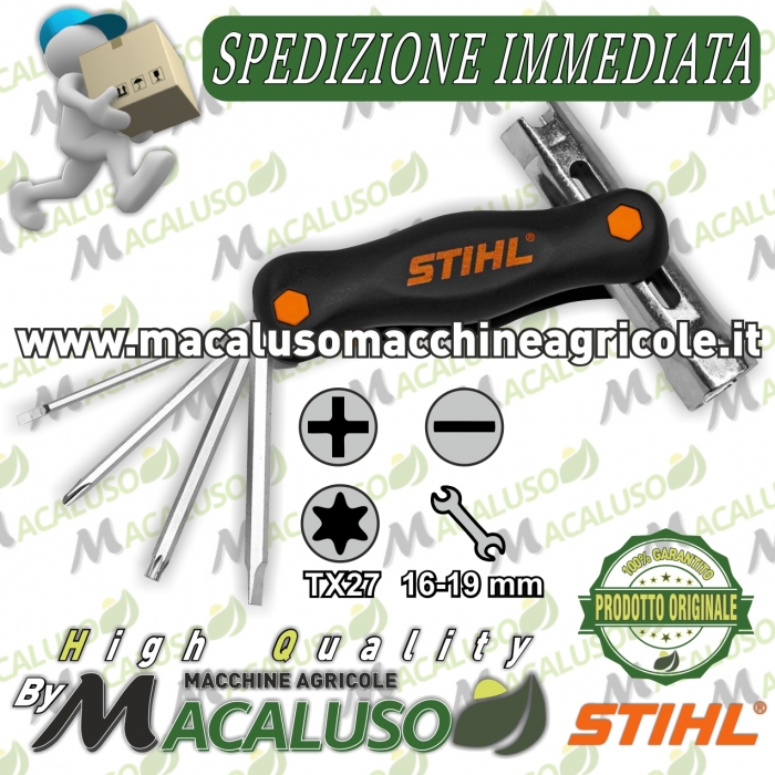 Pratico utensile multifunzione di qualità in robusta custodia in plastica con cacciavite da 3,5 mm ( per regolare il carburatore e utilizzabile per pulire le scanalature)