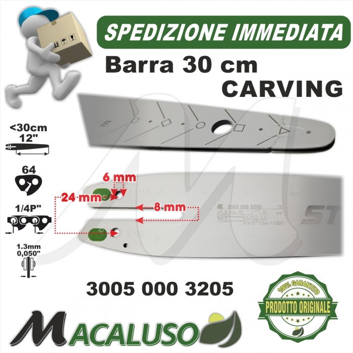 Barra Carving 12" Cm.30 Stihl per motosega professionale passo 1/4 mm.1,3 maglie 64