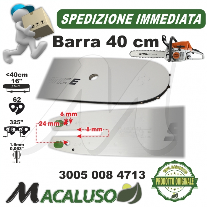 Barra 16" Cm. 40 Stihl per motosega MS passo 325" mm. 1,6 maglie 62