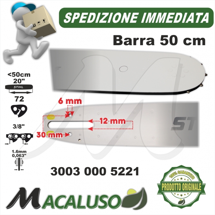 Barra 20" Cm.50 Stihl per motosega MS passo 3/8" mm.1,6 maglie 72