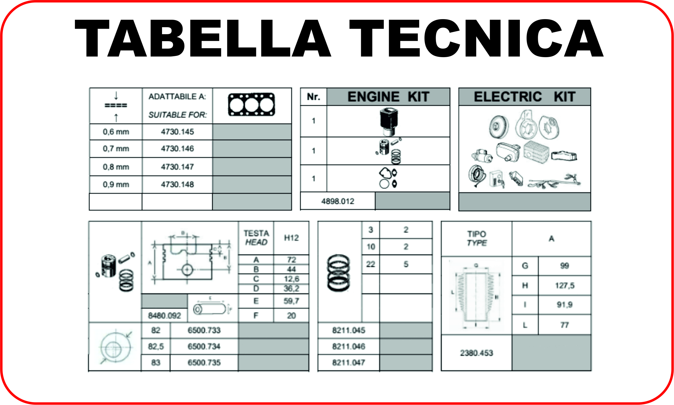 Il kit revisione è un prodotto di ottima fattura intercambiabile in tutte le sue parti con il prodotto originale.