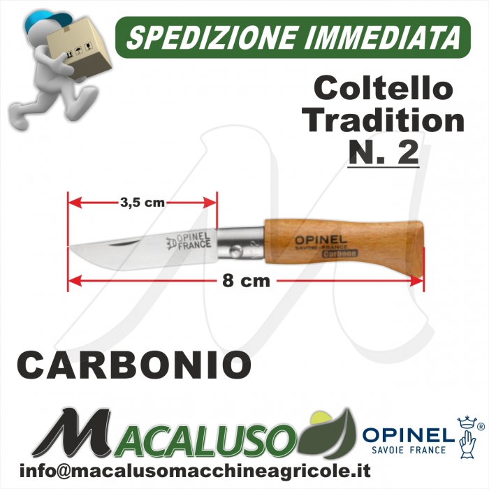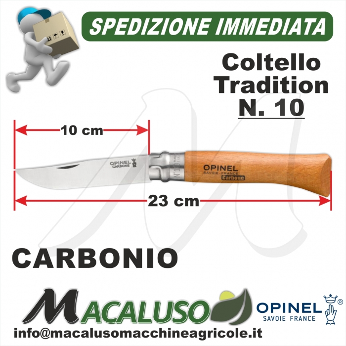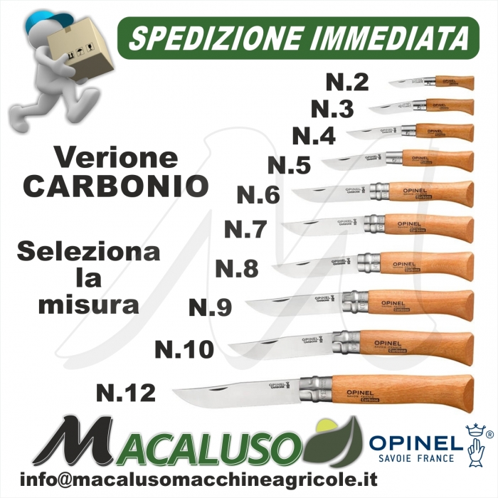 L'acciaio al carbonio Opinel è un acciaio non legato, con alto tenore di carbonio, che consente di ottenere un'eccellente durezza dall'operazione di trattamento termico, garantendo una perfetta tenuta di taglio, una elevata resistenza all'usura e una facile riaffilatura. Tuttavia, poiché l'acciaio al carbonio ha una bassa resistenza alla corrosione da parte dell'umidità, richiede precauzioni per l'uso: non lasciare il coltello in un ambiente umido, specie in lavastoviglie, pulire la lama con un panno unto dopo l'uso e ungerla spesso come la giunzione.