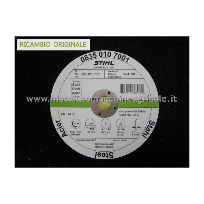 Disco taglio acciaio per troncatrice Stihl da mm. 350 x 4 x 20 08350107001